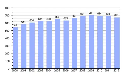 | Gráfica de evolución demográfica de El Real entre 2000 y 2012 |