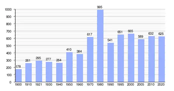 | Gráfica de evolución demográfica de El Saucillo entre 1900 y 2020 |