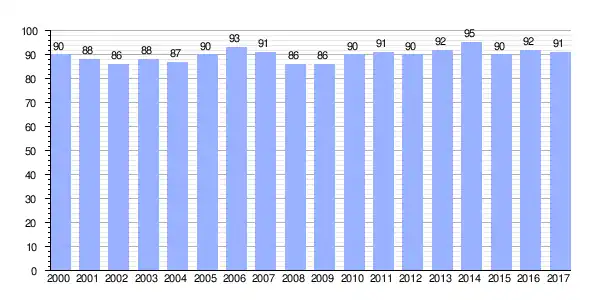 | Gráfica de evolución demográfica de El Valle[2] entre 2000 y 2017 |