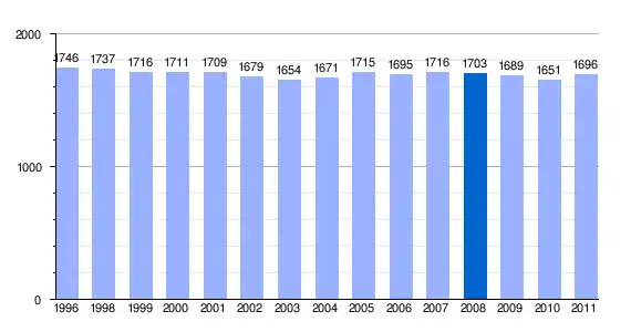 Población de hecho (1900-1991) o población residente (2001) según los censos de población del INE. Población según el padrón municipal de 2017 del INE. |