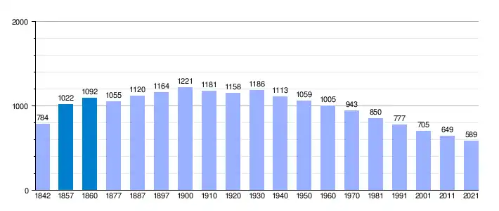 | Gráfica de evolución demográfica de El Villar de Arnedo[4] entre 1842 y 2021 |