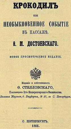 El cocodrilo (en ruso: Крокодил, Krokodil) es un cuento fantástico del escritor ruso Fiódor Dostoievski, publicado por primera vez en la revista Època el 1865. El autor presenta este texto satírico como una historia verdadera de como «un señor de cierta edad y buena presencia, fue engullido todo entero por un cocodrilo, sin dejar ni rastro, y del que resultó, de todo..»