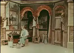 - Charles Claudel como el conserje. Claudel fue uno de los artistas que pintó escenarios basados en los diseños de Méliès.[8]