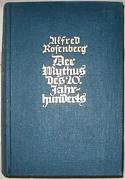 El mito del siglo XX (Der Mythus des zwanzigsten Jahrhunderts) es un libro de 1930 de Alfred Rosenberg, uno de los principales ideólogos del Partido Nazi y editor del periódico nazi Völkischer Beobachter . El "mito" titular (en el sentido especial Soreliano) es "el mito de la sangre, que bajo el signo de la esvástica desencadena el mundo. Es el despertar de la raza-alma, que después de un largo sueño termina victoriosamente con el caos racial ".[1]