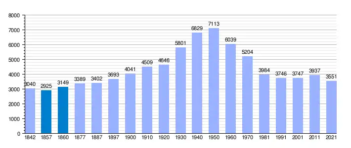 Población de derecho según los censos de población del INE Población de hecho según los censos de población del INEEn 1845 disminuye el término del municipio porque independiza a Molinicos el 14/06/1845[13] |