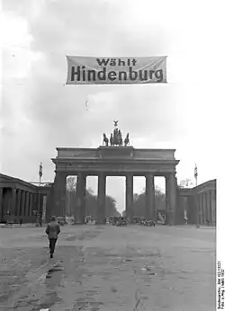 Propaganda electoral de Hindenburg cerca de la Puerta de Brandeburgo.