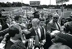 El vicepresidente George H. W. Bush se presentó apoyado por el presidente Reagan y prometió seguir las políticas de Reagan si salía elegido aunque de una forma más moderada. En su contra jugó su participación en el escándalo Irán-Contra.[32] Su principal rival para la candidatura republicana fue el senador Bob Dole. Otros candidatos fueron el predicador fundamentalista Pat Robertson y el congresista Jack Kemp que se proclamó el genuino heredero de las políticas de Reagan.[8]