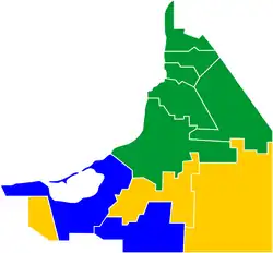 - 11 Ayuntamientos: Compuestos por un Presidente Municipal y regidores, electos para un periodo de tres años no reelegibles de manera inmediata.