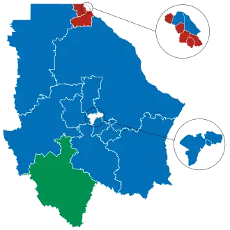 - 33 Diputados del Congreso del Estado. 22 electos por mayoría relativa en cada uno de los Distrito Electorales y 11 electos por el principio de representación proporcional mediante un sistema de lista para un periodo de tres años con posibilidad de reelección para el periodo inmediato.