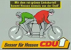 El SPD y Los Verdes formaron una coalición de gobierno no oficial. Holger Börner fue reelegido ministro-presidente en junio de 1984. La coalición de gobierno se formó oficialmente en octubre de 1985, siendo la primera de este tipo en la República Federal.[2][3] En febrero de 1987 la coalición se disolvió por conflictos entre ambos partidos, por lo que en abril del mismo año se debieron convocar a nuevas elecciones.