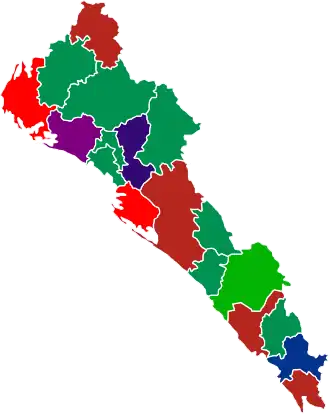 15 diputados. Distritos 1, 2, 3, 4, 6, 8, 9, 10, 11, 12, 16, 17, 21, 22, 23