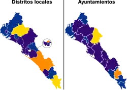 8 ayuntamientos. Angostura, Choix, Concordia, Cosalá, Culiacán, Elota, Mazatlán y Mocorito