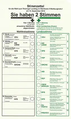 | Fuente: Wahlen im Freistaat Thüringen | |||||||||||||