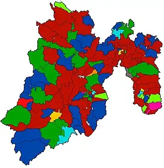 | Partido | Votos | Porcentaje | Municipios | |||||