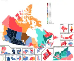 | Partido Liberal de Canadá | 109.148 | 44.87 | 6/7 |