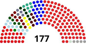 Los diputados son elegidos en 177 distritos electorales de un solo miembro por mayoría simple de votos para un mandato de cinco años. Las elecciones parciales se llevan a cabo, o se realizan nombramientos, dentro de los 60 días (90 días en los estados de Sabah y Sarawak) para llenar los escaños parlamentarios que quedaran vacantes en las elecciones generales. Los escaños de los diputados que quedan vacantes dentro de los seis meses posteriores a la disolución programada del Parlamento no se cubren.[2]