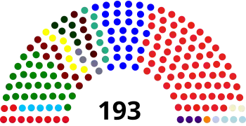 Los diputados son elegidos en 193 distritos electorales de un solo miembro por mayoría simple de votos para un mandato de cinco años. Las elecciones parciales se llevan a cabo, o se realizan nombramientos, dentro de los 60 días (90 días en los estados de Sabah y Sarawak) para llenar los escaños parlamentarios que quedaran vacantes en las elecciones generales. Los escaños de los diputados que quedan vacantes dentro de los seis meses posteriores a la disolución programada del Parlamento no se cubren.[2]