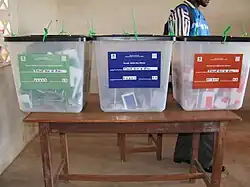 - ↑ «Peaceful Elections So Far in General Elections». African Elections Project. allAfrica.com. 11 de octubre de 2011. Consultado el 11 de octubre de 2011.