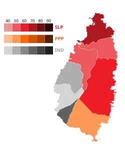 | Partido Laborista de Santa Lucía | 7 648 | 49,6 | 5 |