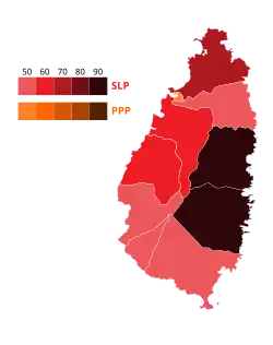 | Partido Laborista de Santa Lucía | 11 898 | 61,5 | 9 | +2 |