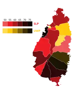 | Partido Laborista de Santa Lucía | 25 294 | 56,2 | 12 | +5 |