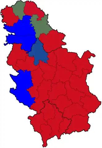 | Partido Radical Serbio (SRS) | 1.066.765 | 22,58 | 73 |