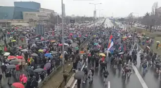 Las protestas masivas continuaron durante noviembre y diciembre, cuando las protestas alcanzaron su punto máximo.[145][146] Durante ese período, los manifestantes también han bloqueado las carreteras y también se han producido numerosos incidentes violentos.[147][148] Las protestas que se llevaron a cabo el 4 de diciembre contaron con la participación de al menos 100.000 manifestantes,[149] y también se produjeron protestas en la diáspora serbia.[150] Tras las protestas, el gobierno retiró la ley de expropiación y se abolió el plan espacial del "Proyecto Jadar".[151][152][153] Las protestas han continuado hasta el día de hoy.[154][155]