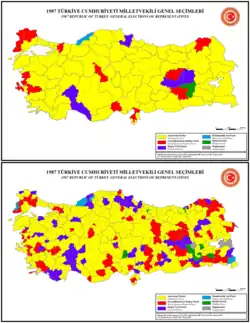 | Elecciones generales de Turquía de 1987 450 escaños en la Gran Asamblea Nacional 226 escaños necesarios para la mayoría | |||||||||||