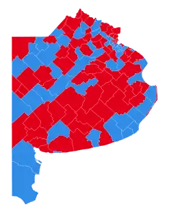 A nivel distrital fue mucho más notorio lo histórico del resultado. El PJ resultó derrotado en distritos donde había obtenido más del 50% de los votos en la elección anterior, siendo su pérdida más dramática en la crucial provincia de Buenos Aires, depositaria del 38% del electorado. Desde 1987, Buenos Aires era una provincia de hegemonía peronista bajo los gobiernos de Antonio Cafiero (1987-1991) y Eduardo Duhalde (desde 1991). En dicha provincia, la lista de la Alianza encabezada por la frepasista Graciela Fernández Meijide recogió el 48,28% de los votos, consiguiendo superar por casi siete puntos a la lista encabezada por la esposa de Duhalde, Hilda Beatriz González.[21] En la Capital Federal, la oposición al justicialismo mantuvo su hegemonía por arrollador margen, con la lista encabezada por Álvarez obteniendo más del 56% de los sufragios y la lista oficialista a muy pocos votos de verse relegada al tercer puesto detrás de la lista de AR encabezada por Cavallo, que logró el 17%.[22]