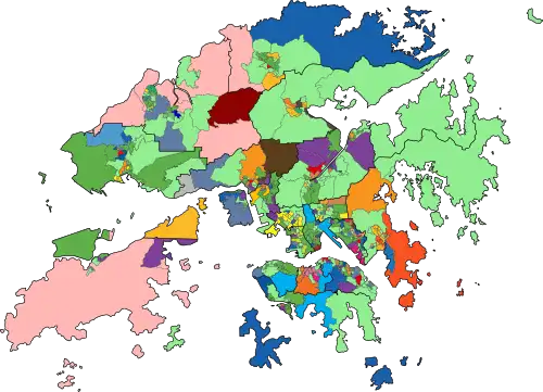 | Sha Tin | Pro-Pekín | NPP | Pro-Democracia | Cívico | 6 | 7 | 1 | 1 | 1 | 25 | 40 | 1 | 1 | 40/42 |