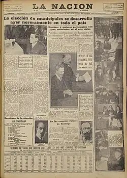 - ↑ Dirección del Registro Electoral. «Resultados Elecciones Municipales 1935-1967» (PDF). p. 2. Archivado desde el original el 25 de octubre de 2022. Consultado el 28 de mayo de 2019.