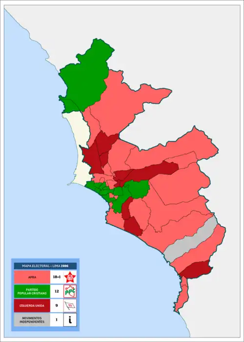 | Elecciones municipales de Lima de 1986 Municipalidad Metropolitana de Lima | |||||||||||