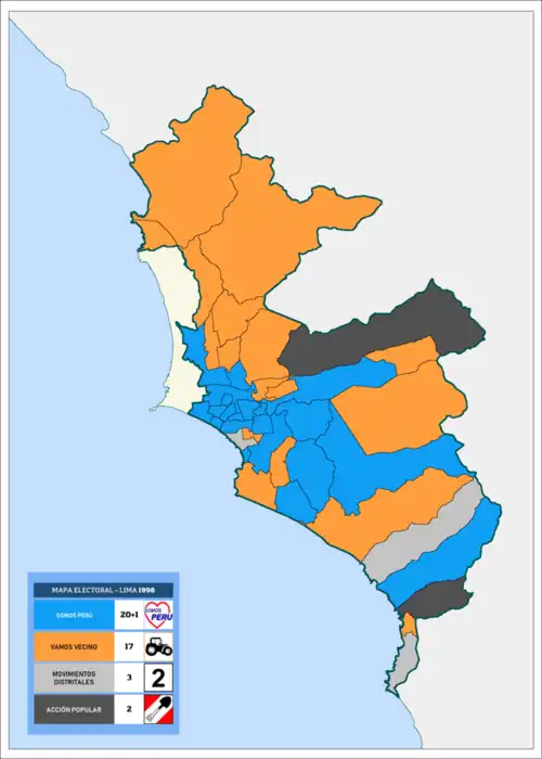 - ↑ a b c d e f g h i j k l m n ñ o p q r Obtuvo la alcaldía como Lista Independiente Somos Lima en 1995.