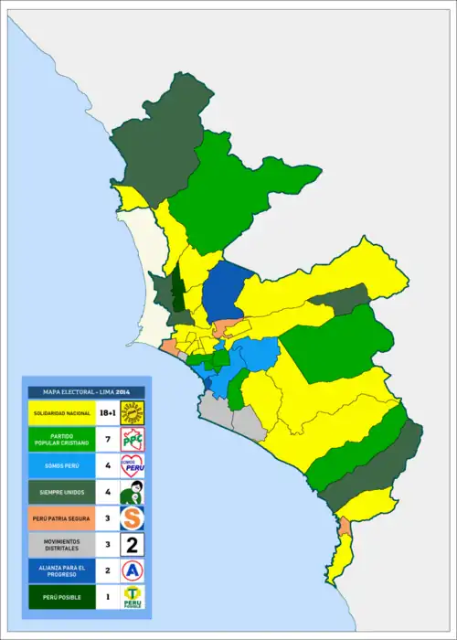 - ↑ «Estos son los resultados a boca de urna para la alcaldía de Lima y distritos». gestion.pe. 5 de octubre de 2014.