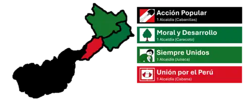 La siguiente tabla enumera el control de los distritos de la provincia de San Román. El cambio de mando de una organización política se resalta del color de ese partido.