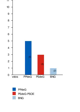- Alcalde: Bieito Seara Formoso - BNG. A comienzos de 1996 hubo una moción de censura que instauró como alcalde a Xulio Aldemira del PSdeG, con el apoyo de cinco concejales del PPdeG. Posteriormente, Aldemira fue expulsado del PSdeG.