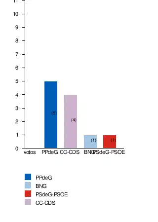 - Alcalde: Mariluz Eugenia González Fidalgo. Sustituida, después de su dimisión, en 1993 por Ricardo Cid Iglesias.