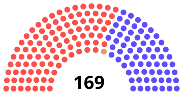 El número de miembros que se eligen de cada circunscripción varía entre 4 y 19. Para determinar la distribución de los 169 escaños entre los 19 condados, se utiliza una fórmula de dos niveles, basada en la población y el tamaño geográfico. Cada habitante cuenta un punto, mientras que cada kilómetro cuadrado cuenta 1,8 puntos.