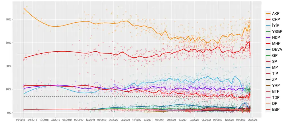 - ↑ «Seçime kaç siyasi parti katılabilecek? Sayı bilgisi YSK'dan geldi». www.ntv.com.tr (en turco). Consultado el 12 de abril de 2023.