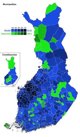 - ↑ «As it happened: Stubb and Haavisto head for second round run-off in Finnish presidential election». News (en inglés). 28 de enero de 2024. Consultado el 6 de octubre de 2024.