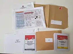 Los votantes de Indonesia reciben cinco papeletas de voto para el Presidente y el vicepresidente, el Consejo de Representantes Regionales (DPD), el Consejo de Representantes del Pueblo (DPR), los consejos provinciales y municipales ( DPRD Provinsi y DPRD Kabupaten / Kota) ) miembros.[19] Los votantes usan un clavo para hacer un agujero en la boleta de votación que indica a qué partido / candidato desean votar.[20] La tabulación de los votos se realiza manualmente en papel.[21] KPU tiene la obligación legal de anunciar los resultados de la elección dentro de los 35 días posteriores a la votación, es decir, antes del 22 de mayo de 2019.[22]