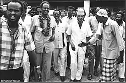 Después de las elecciones de 1993, el presidente saliente, Abdirahman Ahmed Ali Tuur, abandona la sala junto al presidente recién elegido, Muhammad Haji Ibrahim Egal. Un anciano felicita a Tuur por su decisión de aceptar el resultado de las elecciones y retirarse pacíficamente después de varios días de intenso debate y negociación.