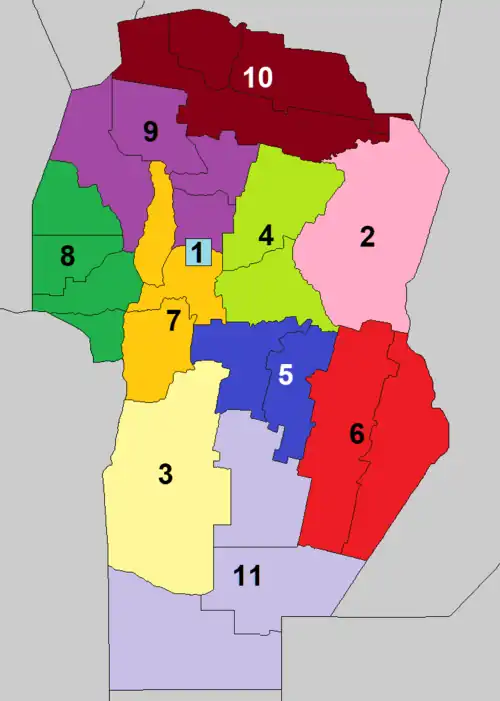 | Sección | Departamentos | Senadores | Mapa |