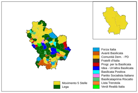 - ↑ «Convocazione dei comizi per l'elezione del Presidente della Giunta e del Consiglio Regionale della Basilicata». regione.basilicata.it. Región de Basilicata. Consultado el 27 de febrero de 2019.