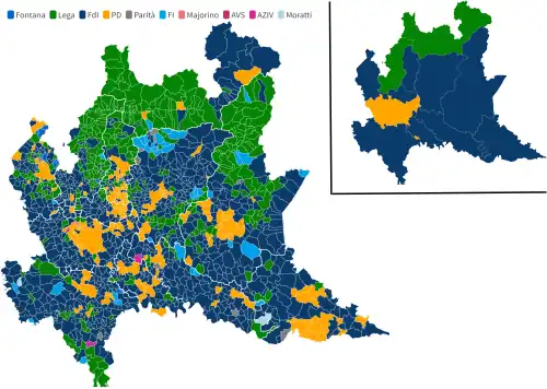 Según los resultados finales, Attilio Fontana fue reelegido presidente de Lombardía con más del 54% de los votos, obteniendo la mayor bonificación prevista por la ley electoral. La participación electoral registrada fue del 41,68%, la más baja jamás registrada para una elección regional.