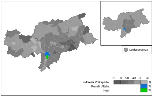 | Acuerdo por la Autonomía[21][22] | Liga Trentino (LT) | 13,05 | 5 | Maurizio Fugatti