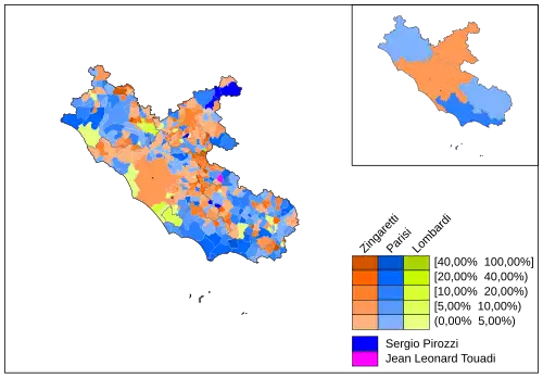 - ↑ Luca Liverani (7 de marzo de 2018). «Lazio. Strada in salita per Zingaretti senza maggioranza in Regione». Avvenire (en italiano).