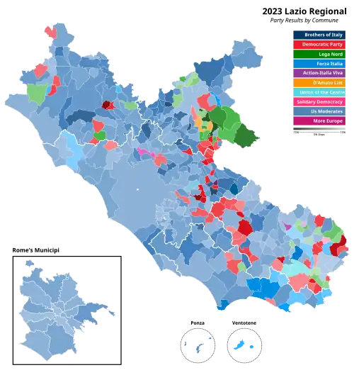 En las elecciones, la coalición de centroderecha ganó con la mayoría del voto popular, obtuvo una mayoría de 11 escaños y tomó el control del Consejo Regional del Lacio por primera vez desde 2013.
