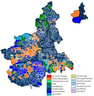 | Por el Piamonte | Liga Piamonte (Lega) | 37,1 | 17 | Alberto Cirio