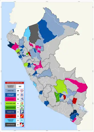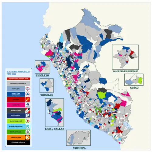 | Elecciones regionales y municipales de Perú de 2022 Autoridades locales para el período 2023-2026 | |||||||||||